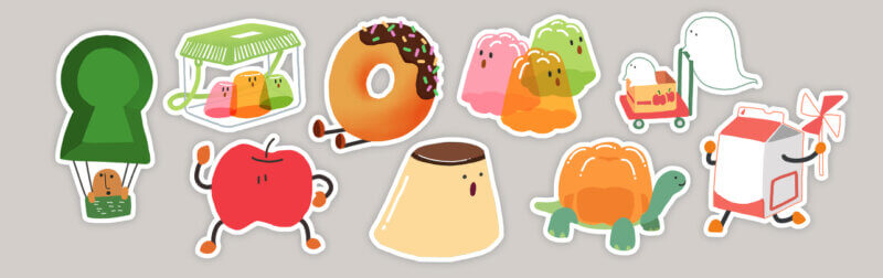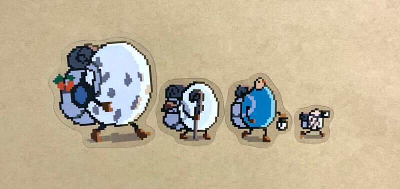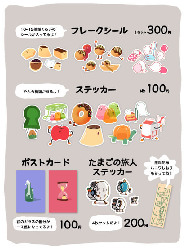 「たまごのキャラバン」というシリーズのドット絵ステッカーです。4枚セット200円です。