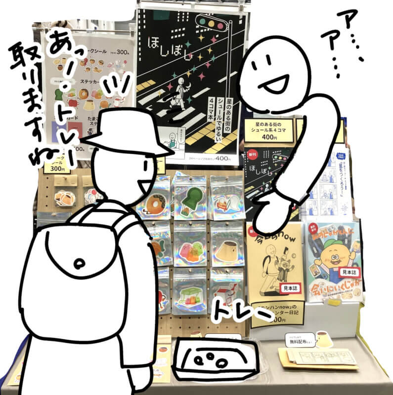 ステッカーも手に取ってくれる方がいてうれしかったです。
